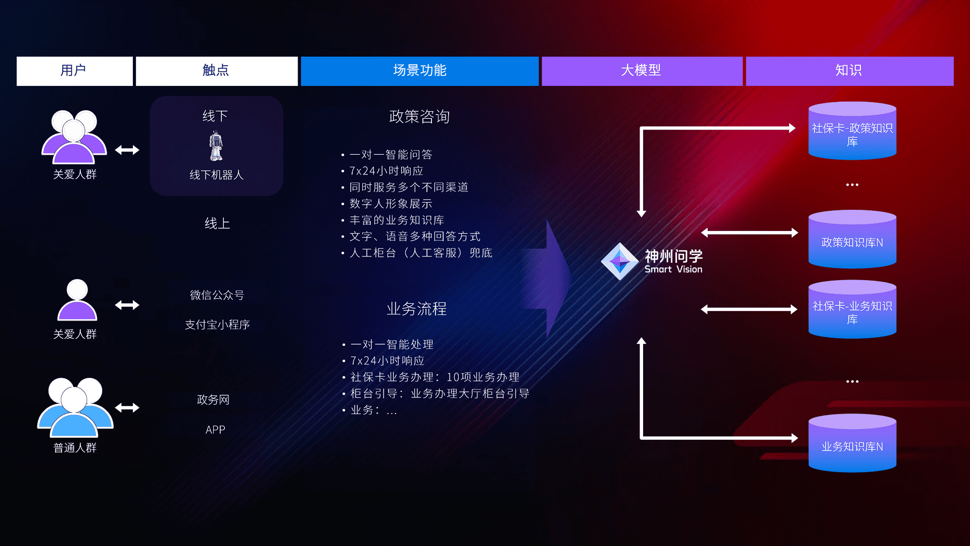 • 线上线下全覆盖:线上提供微信公众号、、、、支付宝小程序、、、政务网、、app多种渠道,,与线下机器人形成完整服务体系。。。